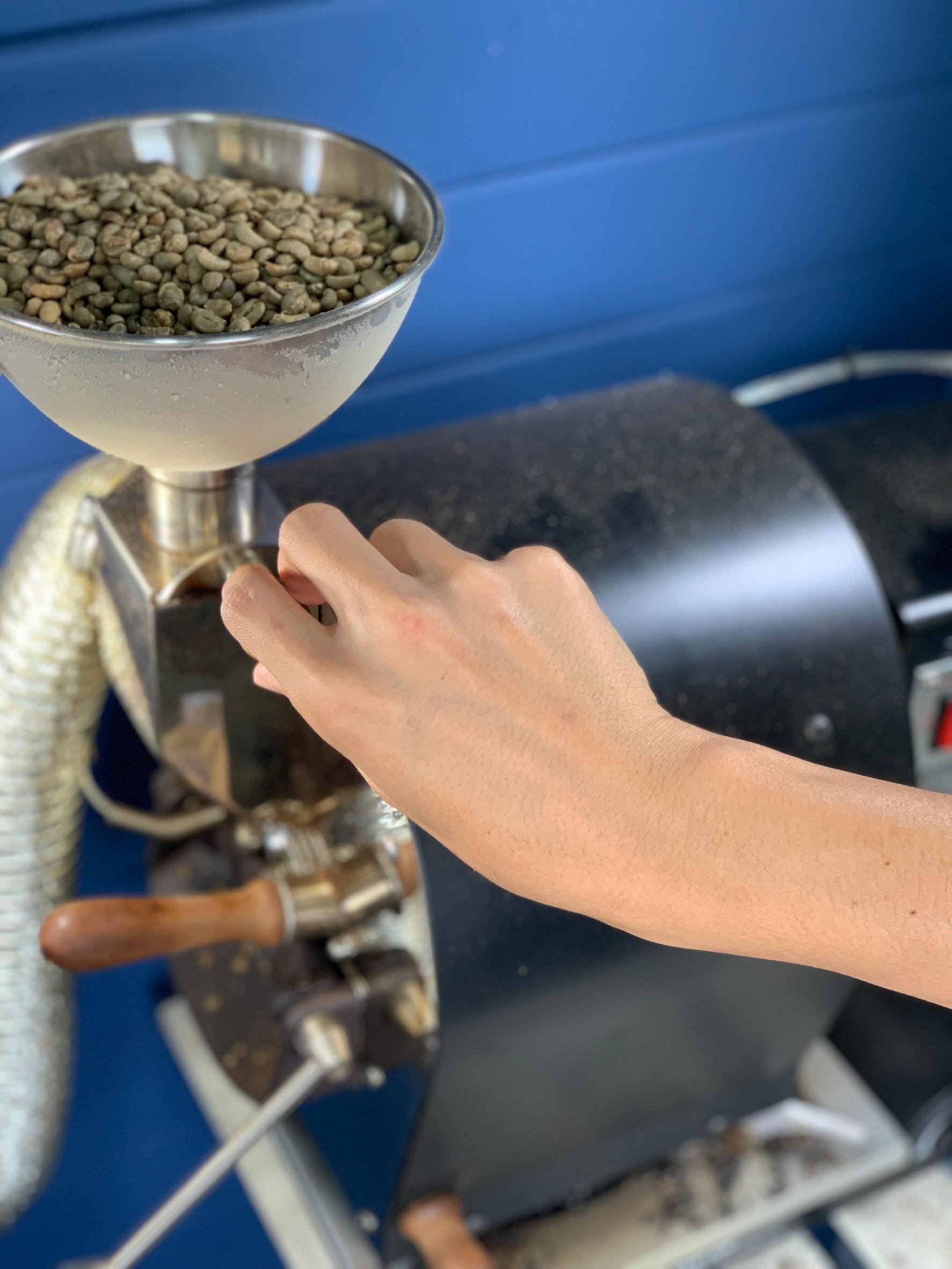 そしていよいよ、焙煎機の中に投入!!
