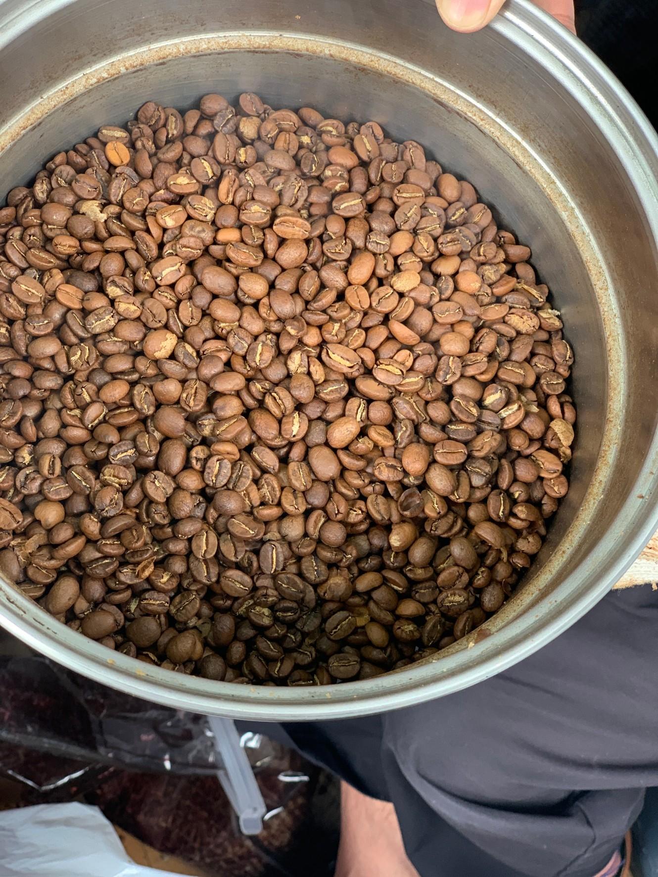 焙煎が終われば、豆を出して…